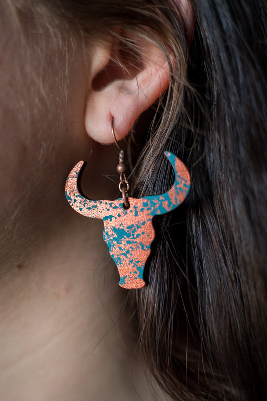 Cow's head copper patina earrings